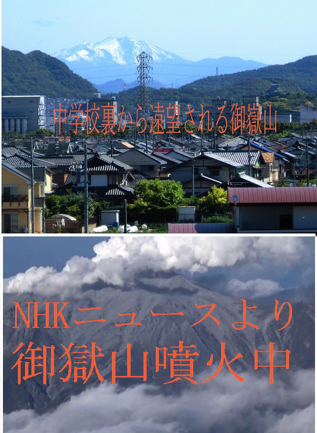 27日午前11時53分ごろ、長野、岐阜県境の3067mの御嶽山の頂上が噴火した。山頂付近の山小屋関係者にもたらされた情報によると、山小屋や登山道40人以上が取り残され、このうち心肺停止状態の人が30人近くいると言う。中には噴石の直撃で落命の人もいるだろう。自力で下山可能な人はよいが取り残された人々の親族や友人の心配は大きい。救出も危険な硫黄により自衛隊や警察も有効に動けず困窮している。ただ噴火の予知が本当にできなかったのであろうか。御嶽山は我が町からも空気が澄んでいるときは綺麗に見える威厳のある山である。自然の脅威に無力な我々ではある。