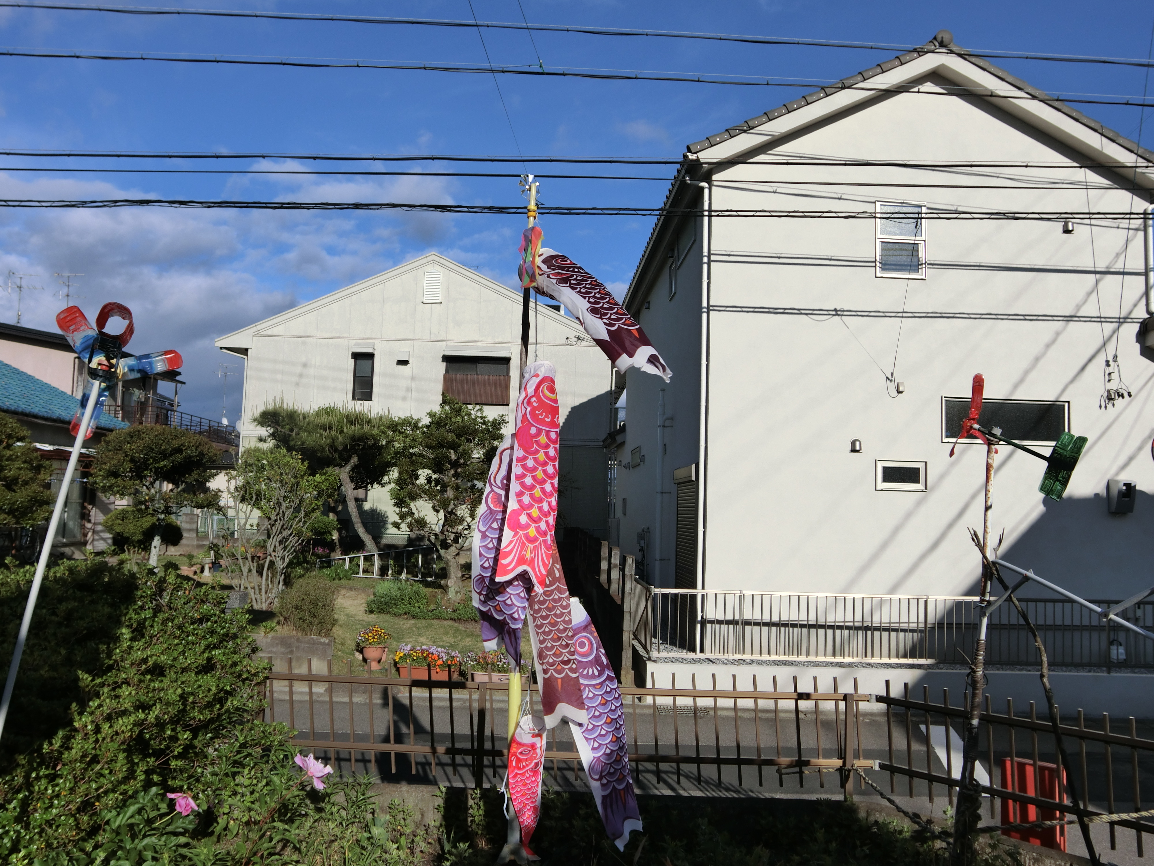 鯉幟は、この季節の風物で大人にも楽しみである。風に棚引くのは清々しい。毎年 我が庭にもささやかながら設置している。でも鯉が互いに絡みつき、ほどくのが煩わしい。輪クリップを使って竿に連結したりしていたが旨く行かない。去年から大型の鯉幟を真似て紐にくくり実施している。これで旨くいかない場合は紐を横に張りこれに取り付けよう。でもこれは家庭では見栄えは良くない。