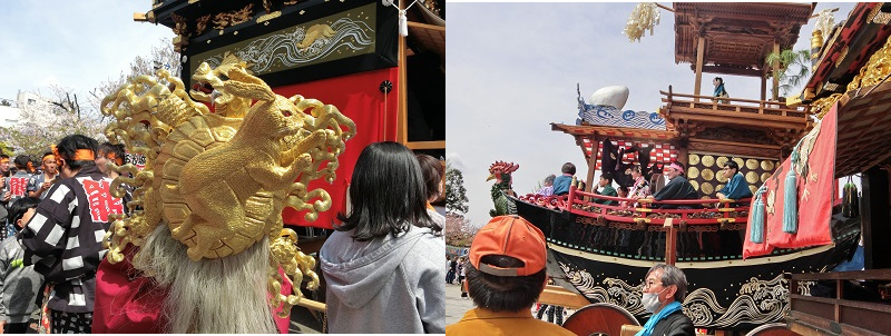 昨年は規模を縮小して犬山祭は開催されたが、今年は通常の開催となった。そこで我が夫婦は自転車で犬山城を目指した。途中で旧清水屋址の薬局の駐輪場に自転車を預けて、徒歩で出来町、本町を経て通り犬山城前の犬山神社の境内で腰掛けて弁当を食べた。弁当は大きな海苔巻きお握り2個ずつで2人とも腹いっぱいとなった。しばらく経ってから桜に木の間にハンググライダーのようなものが遠望された。このよなものは規制されているはずだと思った。それから、聳え立つ山車を見ながら針綱神社方面に移動した。ここでカメラ操作の不手際で「どんでんがえし」の撮影は失敗してしまった 昨年は規模を縮小して犬山祭は開催されたが、今年は通常の開催となった。そこで我が夫婦は自転車で犬山城を目指した。途中で旧清水屋址の薬局の駐輪場に自転車を預けて、徒歩で出来町、本町を経て通り犬山城前の犬山神社の境内で腰掛けて弁当を食べた。弁当は大きな海苔巻きお握り2個ずつで2人とも腹いっぱいとなった。しばらく経ってから桜に木の間にハンググライダーのようなものが遠望された。このよなものは規制されているはずだと思った。それから、聳え立つ山車を見ながら針綱神社方面に移動した。ここでカメラ操作の不手際で「どんでんがえし」の撮影は失敗してしまった。その後人混みの雰囲気を楽しみながら、移動したが暑さで体調を害した人が救急車で運ばれるのも目撃した。我々は無事に帰宅することができた。