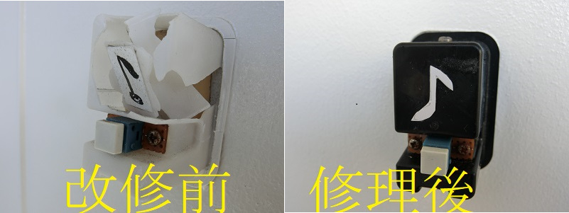 The appearance of the switch for the chime at the entrance of my home worsened. I perform the function of the switch, but a look is not good. Originally I changed it for a switch on hand as the conduction of the switch was bad, and a chime did not sound. It was these days, but a neighboring woman came and pushed the switch, but a cover has been damaged when I thrust the upper part of the switch cover as a chime did not sound. But it is not broken and can use the switch enough as it is. However, the feeling is not good for me as it is the door. Therefore I decided to change a switch cover. This cover diverted the ink cover of the printer to both the damaged thing and the thing to have made newly. I changed the color from the white to the black.