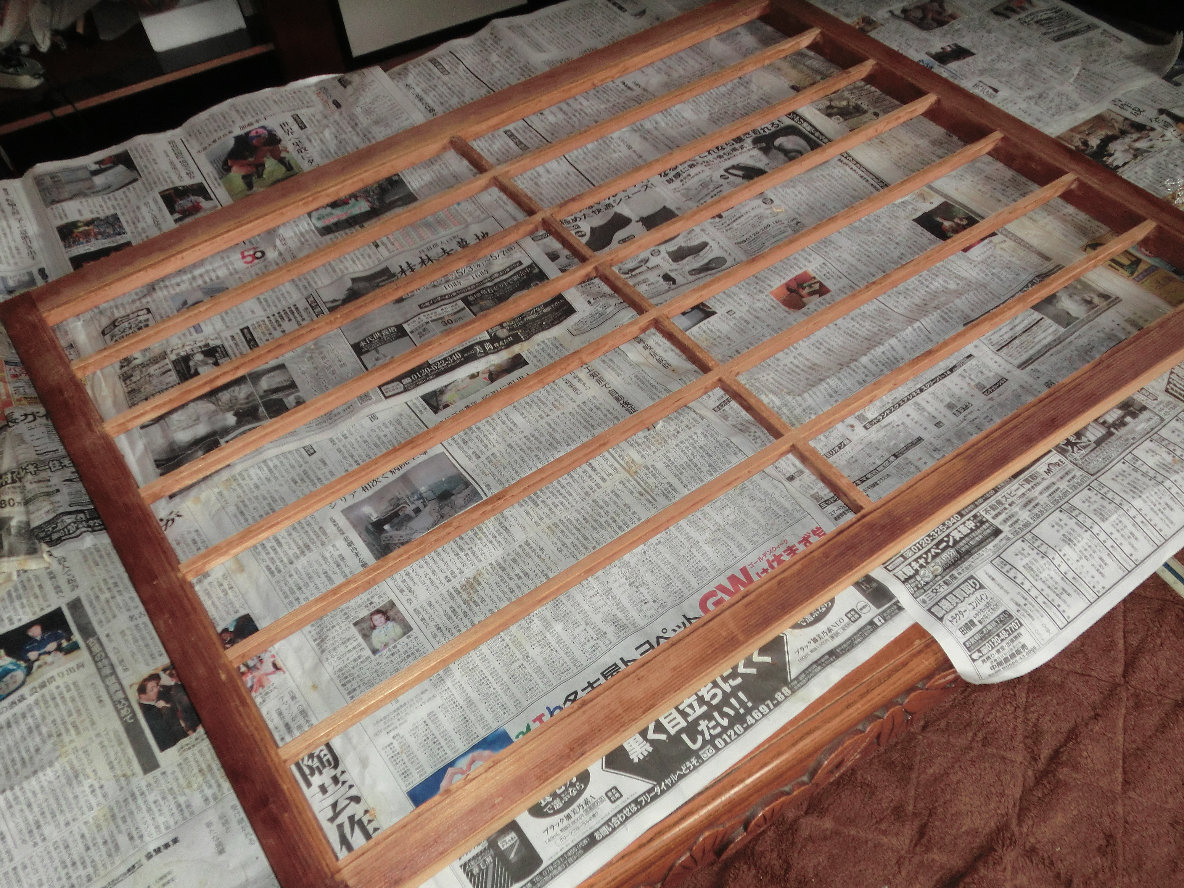 我が家の座敷の玄関側の小窓の障子が破れていて、張り替える事にした。今までは刷毛や糊を用意した。糊もメリケン粉を薄く溶かして作った。前作業として桟に着いている古い紙を剥がした後に、更に桟についている糊を濡れ雑巾で拭きとらねばならなかった。紙を貼った後に霧吹きをしたものである。これらが面倒なため年末の憂鬱の一つであった。 ところが今回購入してきた障子紙は、水と糊が要らず、電気アイロンだけで作業できるものである。即ち、障子紙の片側全体に熱で溶ける樹脂材が塗布されていた。作業としては、1日前に障子枠から紙を剥がし乾燥させてから、必要な障子紙をロールから切り出して、電気アイロンの先を当てて貼り付けた。霧吹きも不要であり、隔世の感である。 Washing and stretching of the shoji The shoji of the small window on the entrance side of the room of my home was torn and decided to repaper it. I prepared a brush and paste so far. I dissolved flour thinly and made the paste. After having torn off the old paper which arrived at the crosspiece as previous work, I had to wipe off the paste which a crosspiece had more with a wet rag. After having put paper, I did a sprayer. Because these were troublesome, it was one of year-end depression. However, I do not need water and paste, and the shoji paper which I purchased this time can work only in an electric iron. In other words, the resin materials which dissolved in the whole one side of the shoji paper by heat were applied. I cut and brought down necessary shoji paper from a roll after tearing off paper, and being dried from a shoji frame as work one day ago and I exposed the point of the electric iron and stuck it. The sprayer is unnecessary, too and is Progress of the world. Die Wäsche und das Ausdehnen des shoji Shoji im kleinen Fenster an der Eingangsseite des Zimmers meines Hauses war zerrissen und beschlossen, es repaper. Ich bereitete ein Pinsel "und" Einfügen so weit. Ich habe Mehl dünn aufgelöst und die Paste. Nach dass abgerissen das alte Papier, das an die Oberschwelle als Vorarbeiten angekommen, hatte ich die Paste abwischen, die ein Querstück mehr mit einem nassen Lappen hatte. Nach Papier gestellt, habe ich eine Spritze. Weil diese lästig waren, gehörte es zum Jahresende Depression. Jedoch ich nicht brauchen Wasser und einfügen, und die Shoji-Papier, das ich diesmal gekauft kann nur in ein Bügeleisen arbeiten. In anderen Worten, galten die Harz-Materialien, die die ganze eine Seite des Shoji-Papier von Hitze aufgelöst. Ich schneide und notwendigen Shoji-Papier von einer Rolle nach Papier abreißen gebracht und getrocknet aus einem Shoji Rahmen eines Tages der Arbeit vor und ich den Punkt des elektrischen Bügeleisens ausgesetzt und steckte ihn. Die Spritze ist unnötig, zu und Fortschritt der Welt.