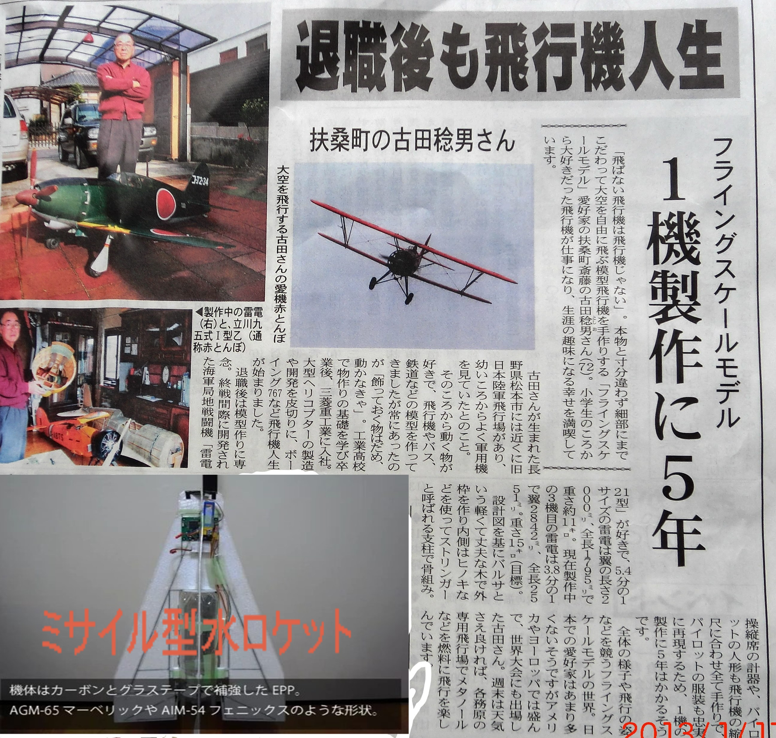 趣味で種々なものを製作している人や売れるあてもないのに小説を書いている人もある。小説の方は自費出版している女性も知っている。私の興味あるものは動く物を作っている人々である。また物作り啓蒙の一環として小学生たちに講習会を開き、例えば水ロケット等の競技をさせる者もいる。動くと言ってもこの水ロケット等は無制御であるため何処へ飛んでいくか分らない。そこで人が制御して飛ばすラジコンがあるが昨今は玩具メーカー等が存在して適当な価格で販売されている。このラジコンの制御も昨今の携帯電子機器で可能なものもある。これはこれで製作技量のない一般の人にも私にも面白い。話題としているラジコンであるがネットをみていると外国人が比較的大きなラジコン飛行機をつくりこれにぶら下がって飛んでいる例があった。日本でも退職後の趣味とした実物の1/5程度の機体を作っている人が近くにいるとの地方新聞の記事に出ていて驚いた。また外国では本物の飛行機を作って飛んでいる人がいると聞いて驚いている。ところが日本人にも自作のヘリコプターを作りこれに乗り込み操縦して飛んでいるのをネットでみて更に驚いた。私にはこれらの人の知識や技量は無いので今興味のある水ロケットをラジコン化してみよう。これも既にミサイル化している人もいるが私には飛翔制御のソフトウエアが理解できないので当面は無理である。